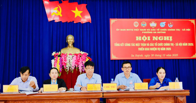 Sáng ngày 30/12/2025, Ủy ban MTTQ Việt Nam phường Sa Huỳnh và các tổ chức chính trị - xã hội phường tổ chức Hội nghị tổng kết công tác năm 2025 và triển khai phương hướng, nhiệm vụ năm 2026. Đồng chí Nguyễn Văn Lượng, Chủ tịch Ủy ban MTTQ Việt Nam phường và các đồng chí Phó Chủ tịch Ủy ban MTTQ Việt Nam phường đồng chủ trì hội nghị.
