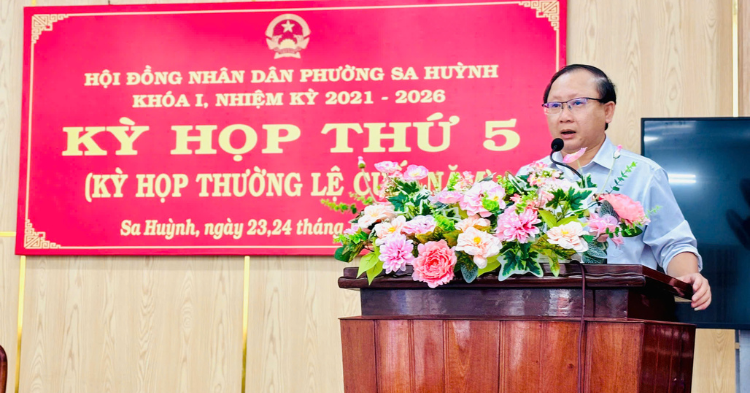 Ngày 23/12/2025, HĐND phường Sa Huỳnh, khóa I, nhiệm kỳ 2021 – 2026 tổ chức Kỳ họp thứ 5 – Kỳ họp thường lệ cuối năm 2025 để đánh giá những kết quả mà địa phương đã đạt được trong phát triển kinh tế, xã hội, đảm bảo quốc phòng, an ninh trên địa bàn và đề ra phương hướng, nhiệm vụ trọng tâm năm 2026; đồng thời, xem xét, quyết định một số nội dung thuộc thẩm quyền. Đồng chí Võ Thanh Hùng, Bí thư Đảng ủy, Chủ tịch HĐND phường và đồng chí Phạm Thế Diễn, Phó Chủ tịch HĐND phường đồng chủ tọa, điều hành Kỳ họp.
